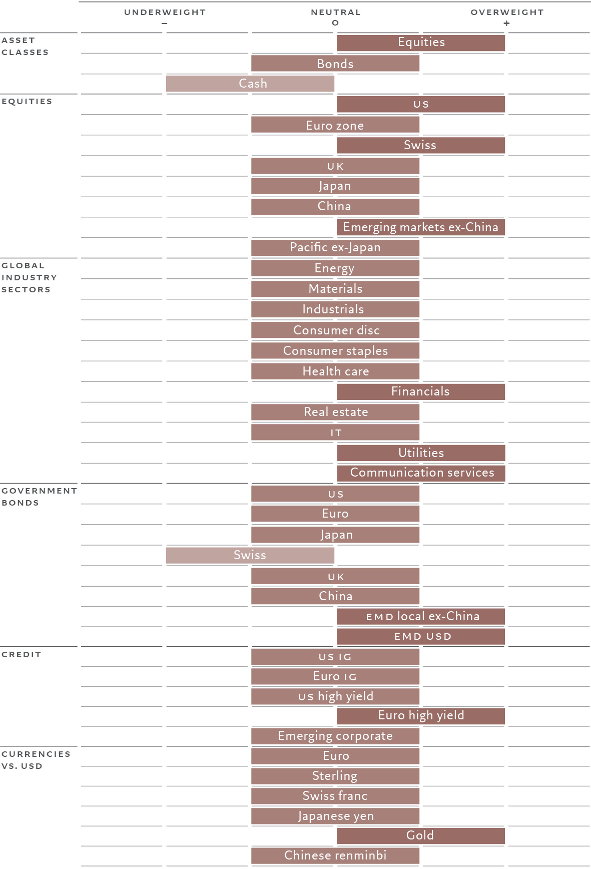 Aandelenmarkten zijn het nieuwe jaar positief begonnen, en de belangrijkste ingrediënten voor verdere stijgingen zijn aanwezig. De liquiditeitsvoorwaarden zijn gunstig, overheden wereldwijd verhogen hun publieke uitgaven (zoals in Japan, de VS en Duitsland), de economische groeivooruitzichten zijn solide en de inflatie lijkt onder controle (zie Fig. 2). Daarom blijven we een overweging in aandelen en een onderweging in obligaties hanteren, en hebben we onze blootstelling aan industriële waarden en opkomende markten verhoogd.