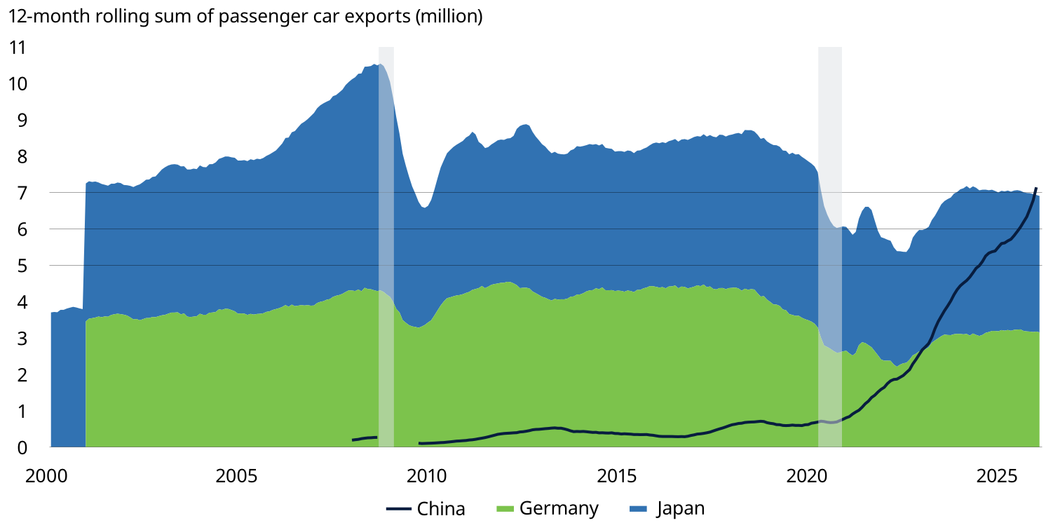 De Chinese auto-export is inmiddels groter dan die van Duitsland en Japan samen