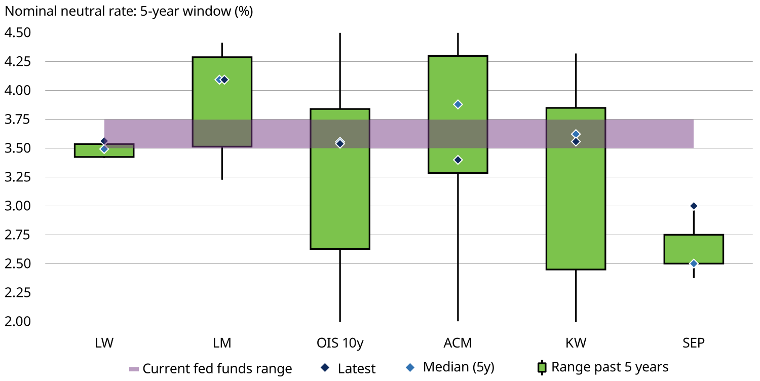 Modellen suggereren dat de fed funds rate op of onder het neutrale niveau ligt