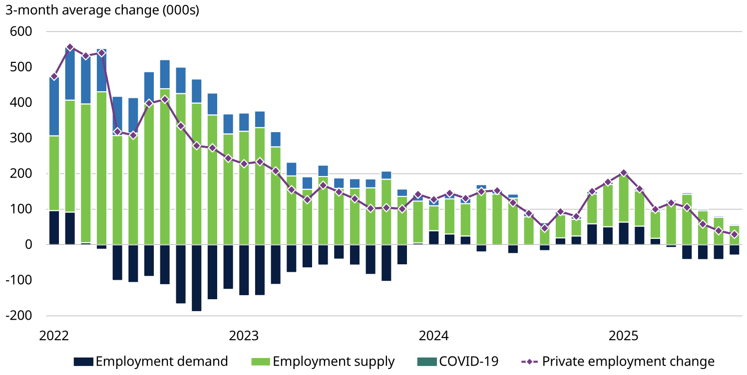 De afkoeling van de banengroei in de VS komt grotendeels door een lager arbeidsaanbod
