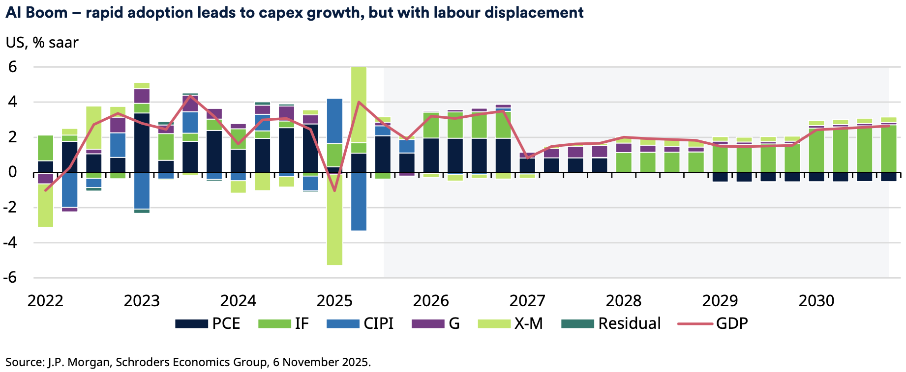 Lees meer in het meegestuurde artikel AI economic scenarios: revolutionary growth, or recessionary bubble? Van David Rees, senior econoom bij Schroders.